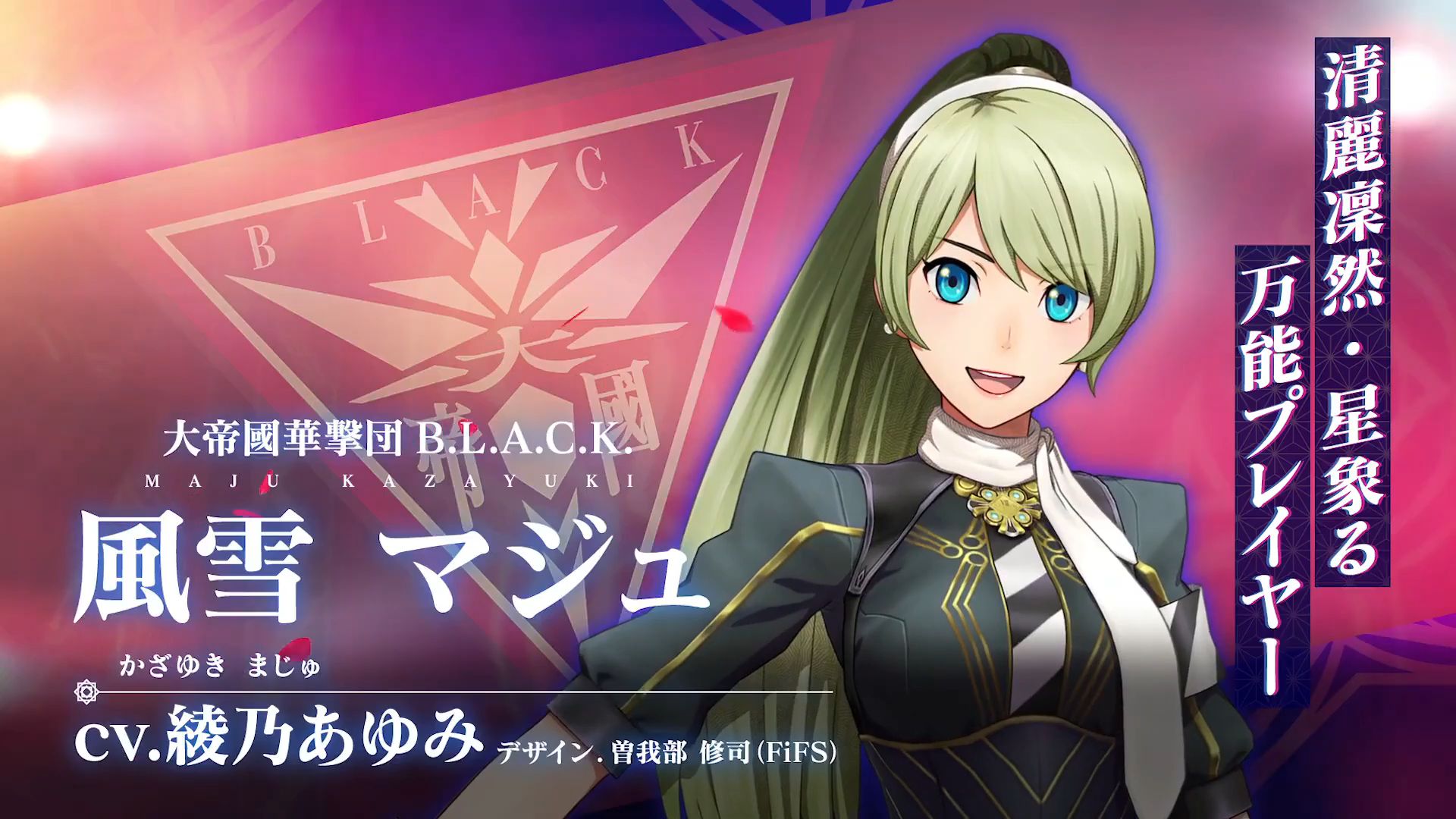 On November 12, the official Sakura Revolution YouTube channel updated with a new teaser trailer. The three-minute teaser is split into two parts: one that focuses on the Great Imperial Combat Revue B.L.A.C.K., while the features Himeka Tenjin of Kyushu’s Imperial Combat Revue.